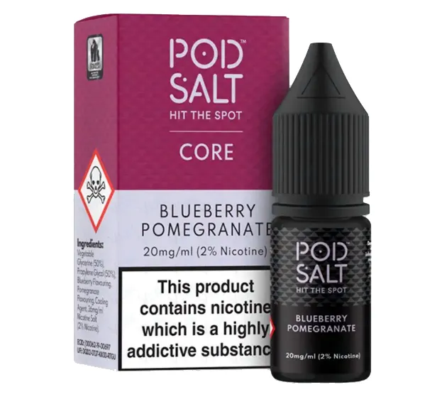 The Pod Salt Core Blueberry Pomegranate 20mg/30ml range offers a premium selection of British-made flavors. Blended with our award-winning Nicotine Salt to produce a perfectly smooth and effective vaping experience. Designed to taste delicious. Designed to Hit the Spot