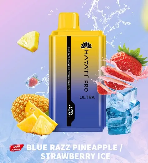 Hayati Pro Ultra Blue Razz Pineapple / Strawberry ice 15000pfs 2% Rechargeable Disposable are now available at King Vape DUBAI. The Hayati Pro Ultra disposable vape is a popular choice for vapers looking for a convenient and pleasant vaping experience. The Pro Max also boasts a big 550mAh battery that can offer up to 15000 puffs of delightful vapor. The Hayati Pro Ultra comes in different tastes, so there’s bound to be one that everyone will appreciate de All amazing flavors available at store and with excellent delivery service .