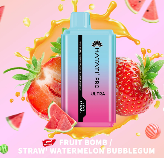 New Hayati Pro Ultra Fruit Bomb/Straw watermelon Bubblegum 15000pfs Rechargeable Disposable are now available at King Vape DUBAI. The Hayati Pro Ultra disposable vape is a popular choice for vapers looking for a convenient and pleasant vaping experience. The Pro Max also boasts a big 550mAh battery that can offer up to 15000 puffs of delightful vapor. The Hayati Pro Ultra comes in different tastes, so there’s bound to be one that everyone will appreciate de All amazing flavors available at store and with excellent delivery service .