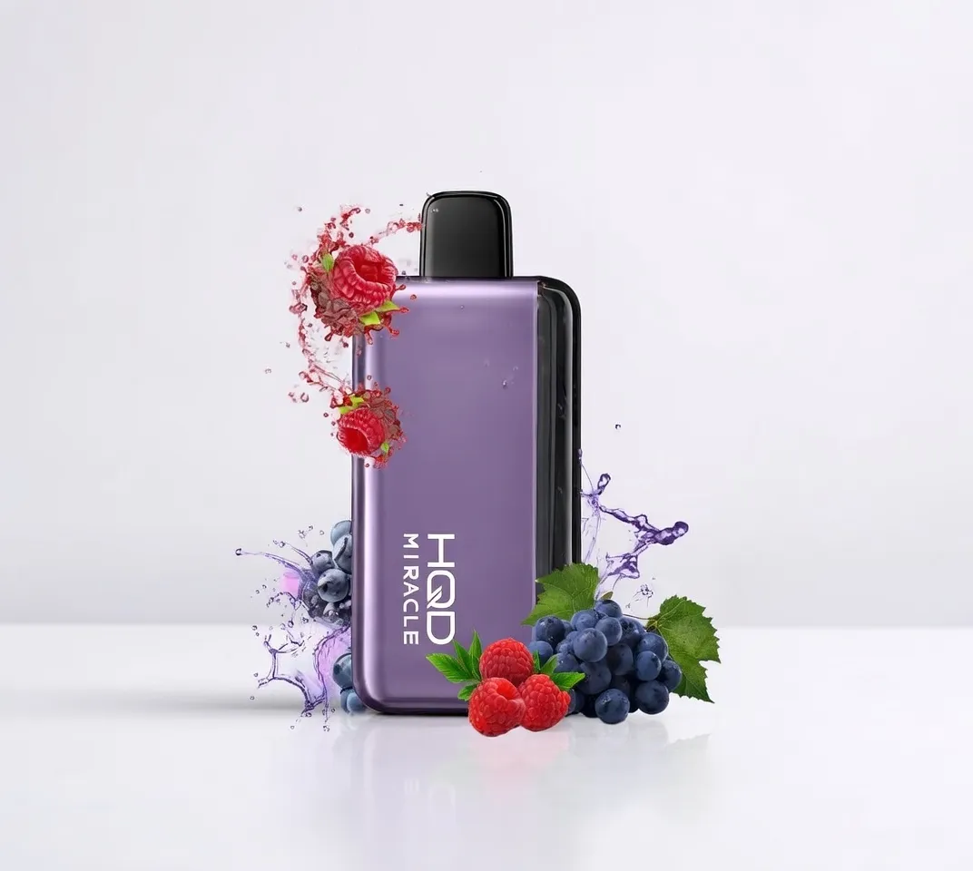 Experience the HQD Miracle Grape Raspberry 8000pfs 0mg with This cutting-edge device surpasses the limitations of traditional disposables, offering an unparalleled vaping experience characterized by extended battery life, exceptional flavor delivery, and innovative technological features. Available now. HQD MIRACLE 8000 is a high-end disposable vape featuring dual mesh coils, a smart LED screen, patented airflow technology, and a rechargeable battery delivering up to 8000 puffs.