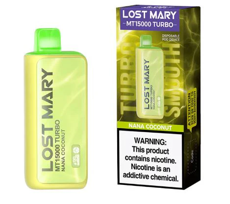 LOST MARY TURBO Nana Coconut 50mg is a powerhouse of flavour and performance. With an impressive 16mL vape juice capacity, this device offers up to 10,000 puffs in turbo mode and an astounding 15,000 puffs in smooth mode. Powered by a reliable 600mAh rechargeable battery, the Lost Mary MT15K Turbo ensures uninterrupted vaping pleasure, made even more convenient with its Type C charging capability.