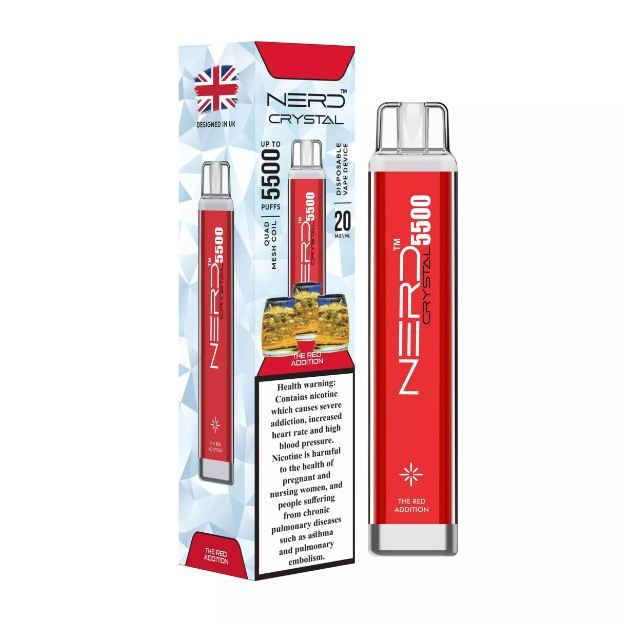This NERD Crystal The Red Addition can vape up to 5500 puffs. Pre-loaded with 12ml of our award- winning e-liquids. Pre-charged pure cobalt battery. Ready to use instantly right out of the box available at king vape dubai store.