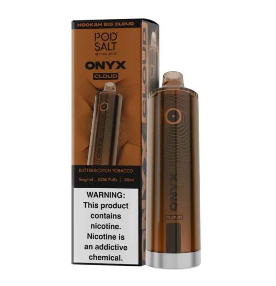 POD SALT Onyx Cloud Butterscotch Tobacco 25000pfs 5mg offers a smooth, long-lasting vape with 25000 puffs and 5mg/ml nicotine.Its sleek, portable design makes it perfect for on-the-go use. Enjoy a satisfying, consistent vape experience with every puff, wherever you are.