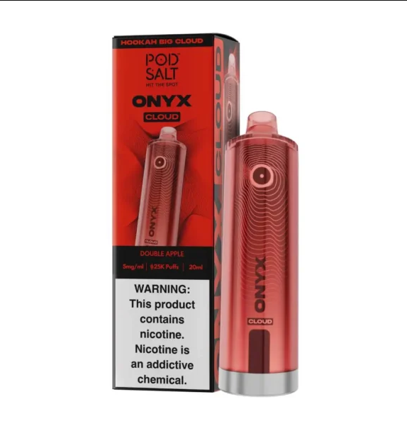 POD SALT Onyx Cloud Double Apple 25000pfs 5mg offers a smooth, long-lasting vape with 25000 puffs and 5mg/ml nicotine.Its sleek, portable design makes it perfect for on-the-go use. Enjoy a satisfying, consistent vape experience with every puff, wherever you are.
