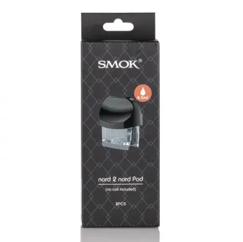 SMOK NORD 2 Replacement Pods, featuring a 4.5mL side filled capacity, offering a NORD and RPM Pod Variant that supports the respective coil series, and is outfitted with an ergonomic mouthpiece for comfortable usage and vapor delivery.