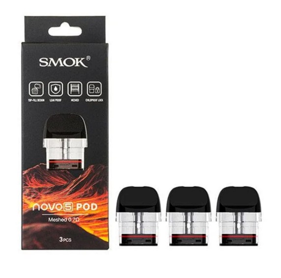 Introducing the Smok Novo 5 Replacement Pods, a perfect match for your vaping needs. These pods boast a 2mL refillable capacity and are crafted from durable PCTG material for lasting performance. Equipped with an integrated 0.7ohm Meshed MTL coil, they ensure exceptional flavor and vapor production.