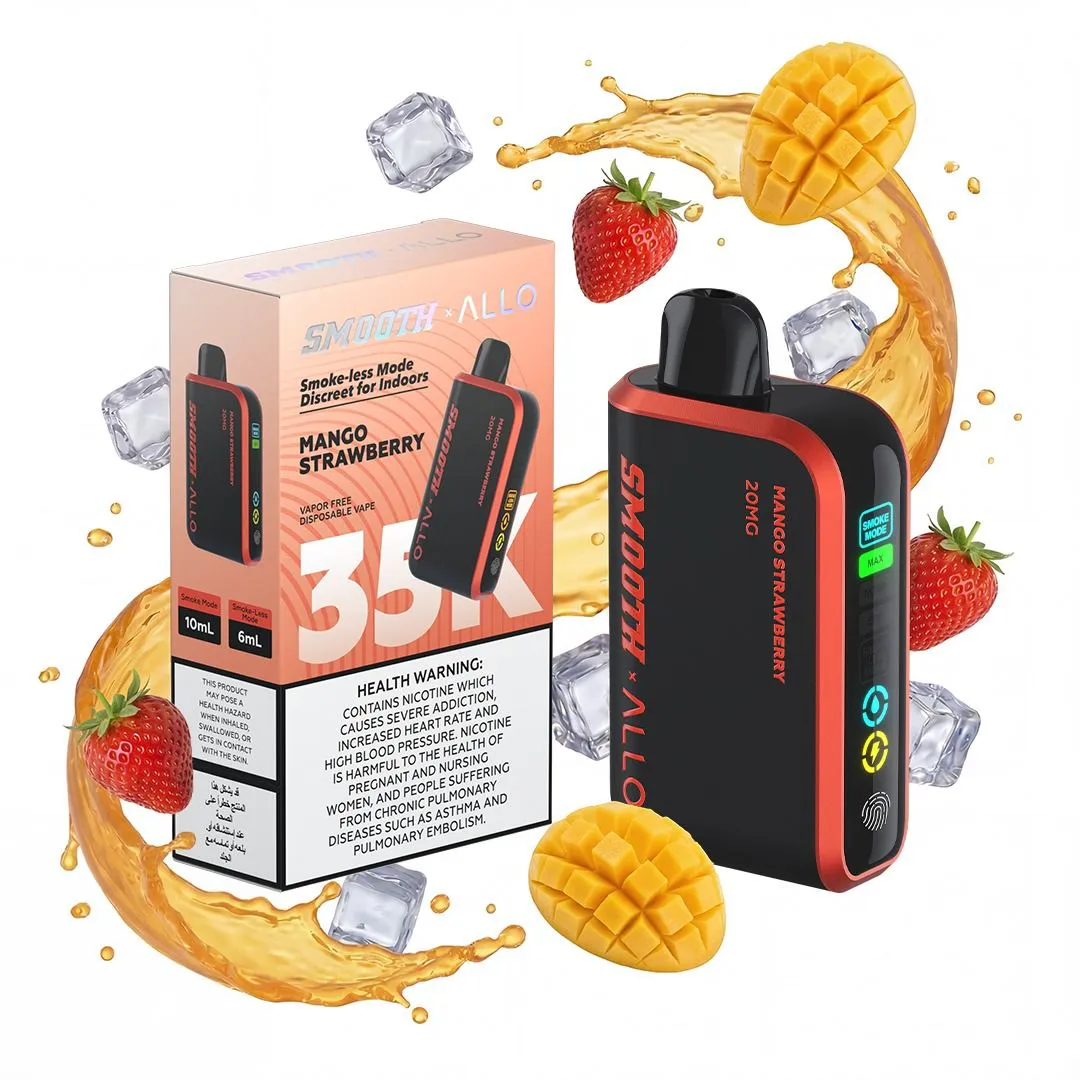 The Smooth Allo Mango Strawberry 35kpuffs 20MG is a high-capacity, premium disposable device designed for vapers who value convenience, flavor, and long-lasting performance. Offering up to 35,000 puffs, this device ensures an extended vaping experience without the need for constant refills or maintenance. Pre-filled with 20mg (2%) nicotine, Smooth Allo delivers smooth and satisfying draws, making it perfect for both beginners and experienced users. Its compact and ergonomic design allows for effortless on-the-go vaping, while the variety of flavors caters to every taste preference