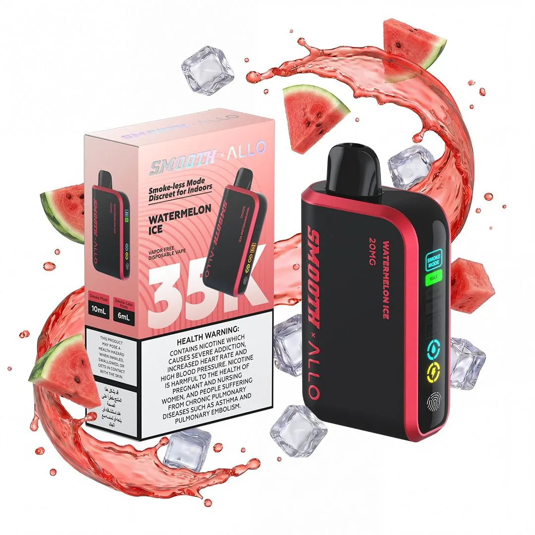 The Smooth Allo Watermelon Ice 35kpuffs 20MG is a high-capacity, premium disposable device designed for vapers who value convenience, flavor, and long-lasting performance. Offering up to 35,000 puffs, this device ensures an extended vaping experience without the need for constant refills or maintenance. Pre-filled with 20mg (2%) nicotine, Smooth Allo delivers smooth and satisfying draws, making it perfect for both beginners and experienced users. Its compact and ergonomic design allows for effortless on-the-go vaping, while the variety of flavors caters to every taste preference