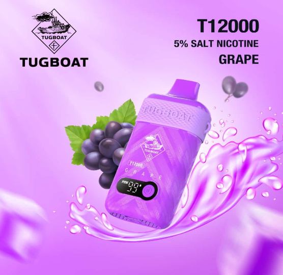 New TUGBOAT T12000 Grape 12000 puffs Rechargeable Disposable are now available at King Vape DUBAI. It has 5% nicotine 8ml strength salt e-liquid capacity delivers a smooth and satisfying hit that’s perfect for any vaping enthusiast. Tugboat Super has battery capacity 500mAh and Puffs 12000 plus. All amazing flavors available at store and with excellent delivery service .