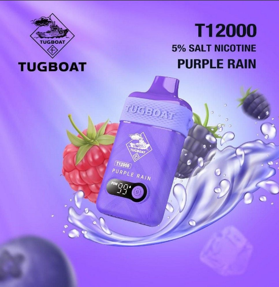 New TUGBOAT T12000 Purple Rain 12000 puffs Rechargeable Disposable are now available at King Vape DUBAI. It has 5% nicotine 8ml strength salt e-liquid capacity delivers a smooth and satisfying hit that’s perfect for any vaping enthusiast. Tugboat Super has battery capacity 500mAh and Puffs 12000 plus. All amazing flavors available at store and with excellent delivery service .
