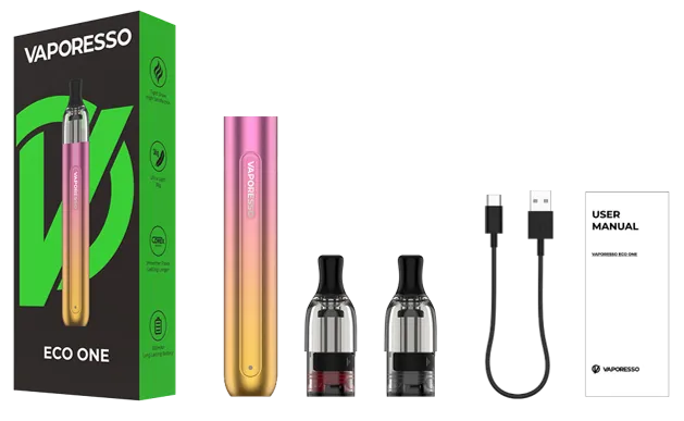 Vaporesso Eco One Pod Kits boasts an 1100mAh built-in battery and a 16W maximum output power for a satisfying vape. Each pod has a 2ml capacity and comes with two mesh pod options a pre-installed 0.8ohm and an included 1.2ohm, delivering excellent flavour and vapour production when you use nic salts.